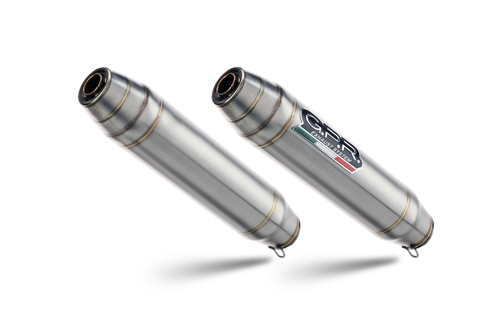 Paire de pot d'échappement homologuées, livrées avec db killer amovible et raccords spécifiques T.82.DE Note: Le bouclier thermique d'origine est doté de deux points de fixation et le kit comprend des dbkiller spéciaux de style vintage.