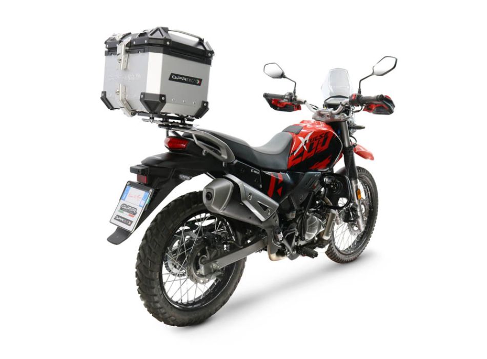 Top case GPR TECH compatible with Hero Xpulse 200 4V 2025/2026 E5 plus Top Case Alpitech en aluminium, couleur argent avec plaque spécifique incluse Capacité Litres 26