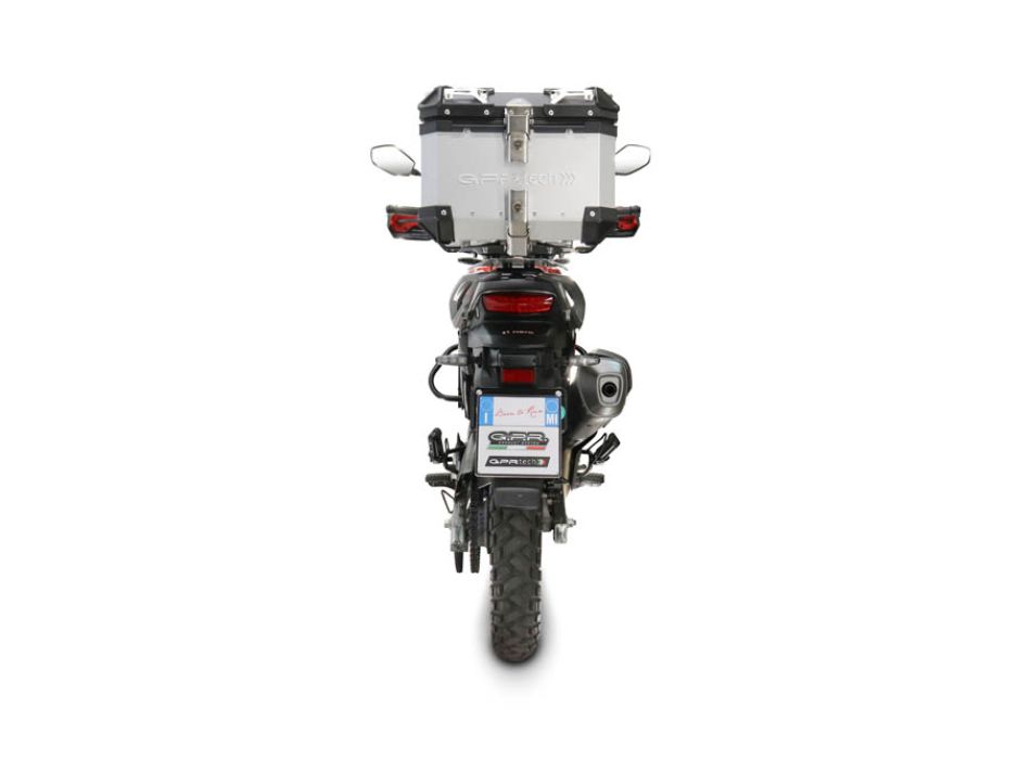 TOP CASE GPR TECH ALPI-TECH, capacité 26 Litres, fabriqué en aluminium 5052, avec coins renforcés, couleur SILVER avec plaque spécifique et visserie incluse pour pouvoir monter le produit sur le porte-bagages arrière d'origine sans aucune modification. Ce Top Case permet de placer un casque Enduro. Le top case GPR TECH comprend une doublure lavable et amovible pour la protection du casque. La protection du dossier et le sac à objets amovible doivent être achetés séparément.